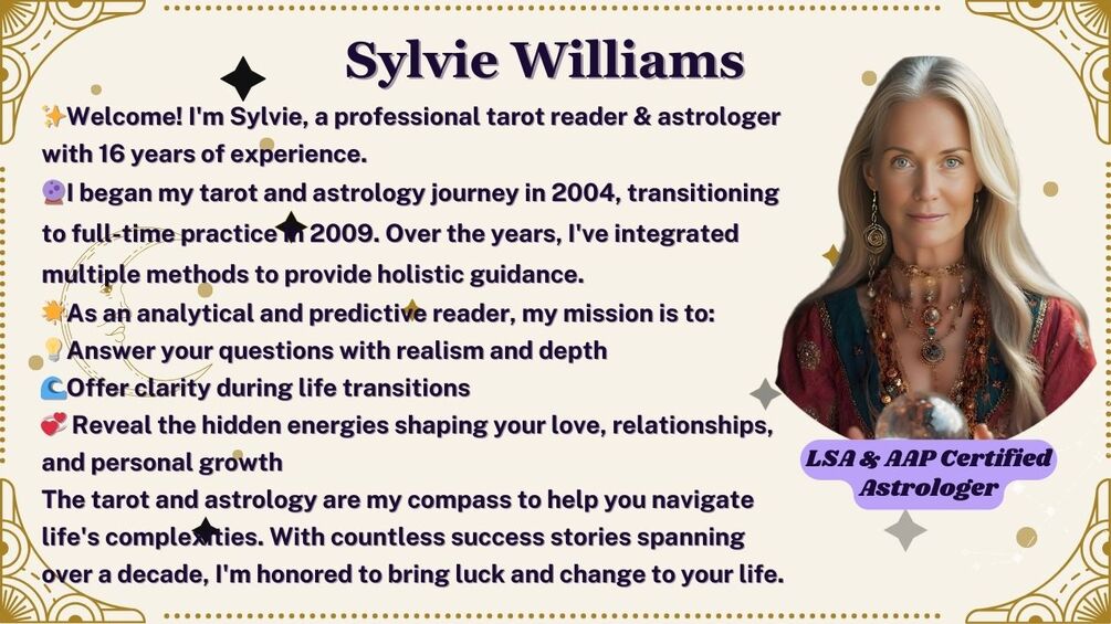 ✨Welcome! l'm Sylvie, a professional tarot reader & astrologer with 16 years of experience.